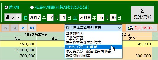 | 1. | 精算表の「キャッシュフロー計算書」をクリック | |||
