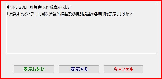 | 2. | 営業キャッシュフロー部の表示方式を選択します | 営業外、特別損益の明細を表示すると「調整」の際に役立つかと思います ご研究ください | ||