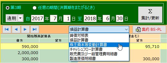 精算表の「株主資本等変動計算書」をクリックします