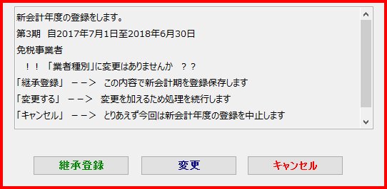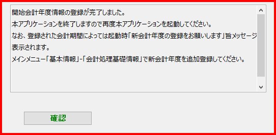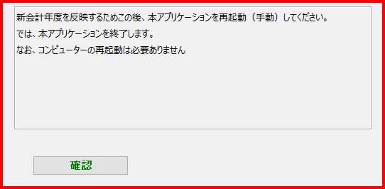 カレンダー日付が新しい会計期に入ると本品起動時このメッセージフォームが表示されます | |