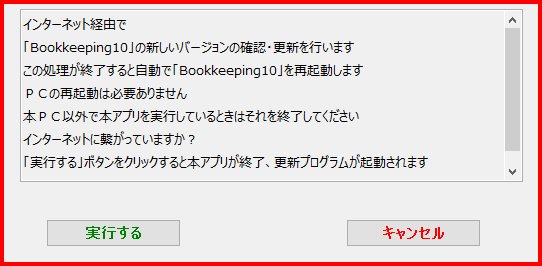 | 3. | 「実行する」ボタンをクリック インターネットに接続できていないときはメッセージフォームが表示されます |