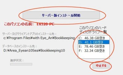 | データベースファイル = 選択されたドライブ:\Area_Eyean10Sea\Bookkeeping10(デフォルトは「D」ドライブ) | |||||||