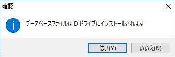 | 5. | データベースの配置先を選択し「サーバー版インストール開始」ボタンをクリック | ドライブの空き状況に応じてドライブを変更してください そのときは他のドライブを指定することをお奨めします |