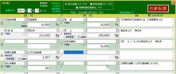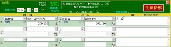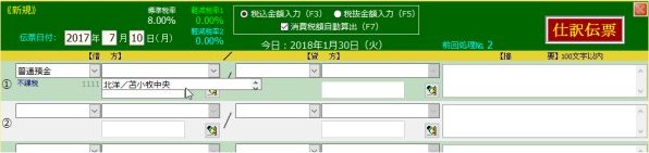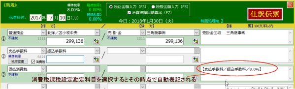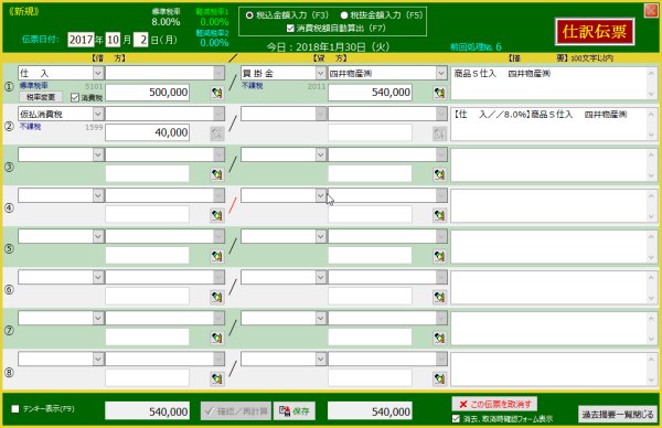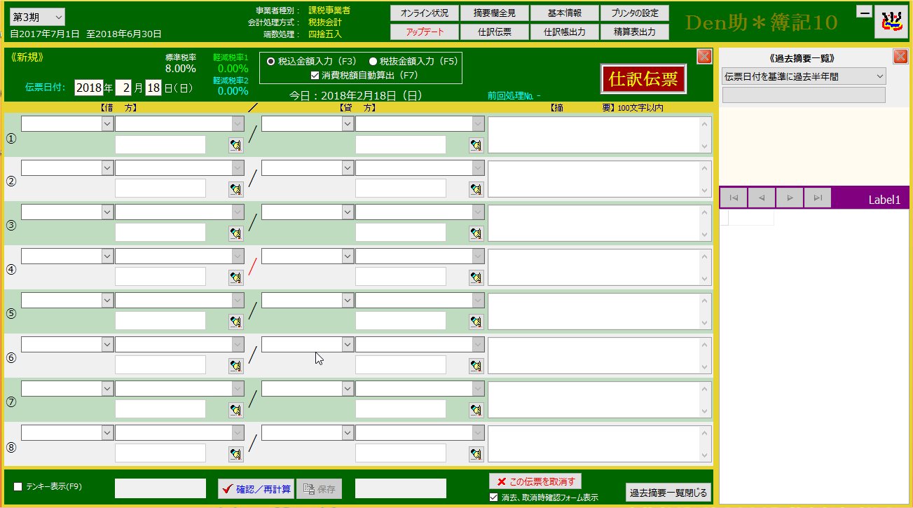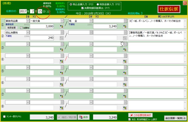 | 過去の摘要文をコピーする | 適用税率を一時的に変更する | 補助勘定科目を消去する | ||