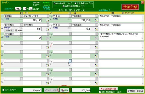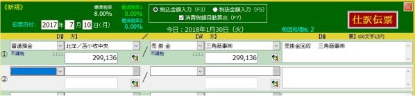 | 7月10日 | 三角商事鰍謔阡ш|金300,000円回収 振込手数料(北洋銀行苫小牧中央支店)864円(税込み)は当方負担 |