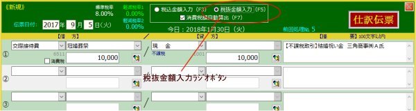 | C. | 次の取引の金額が「税抜き」なので先ず「税抜金額入力」ラジオボタンをクリックします | |