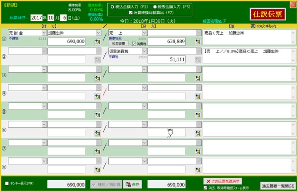 | 10月6日 | 加藤忠鰍ノ商品掛け売り 690,000円(税込み) | |||