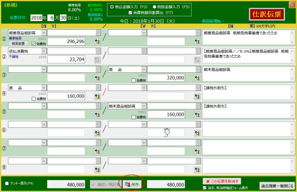 「確認/再計算」ボタンをクリック 複合仕訳にする |