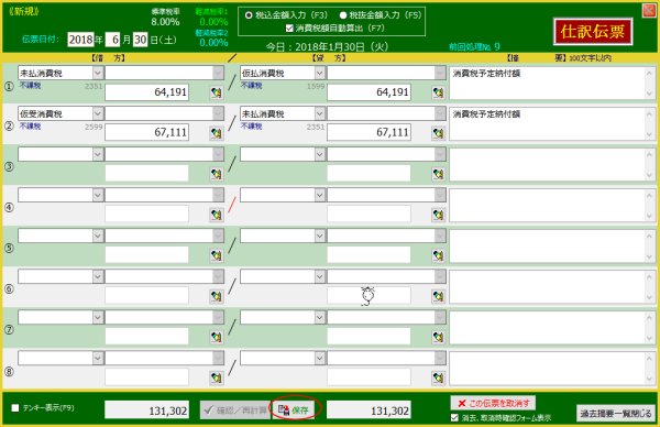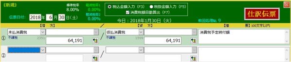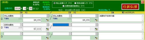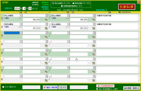 | @. | 1行目借方勘定科目に「未払消費税」を選び