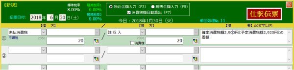 | 2018年6月30日 | @.確定消費税額 2,900円 | |||