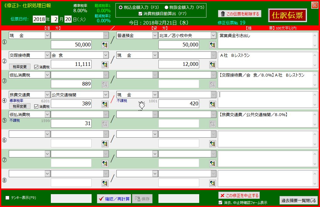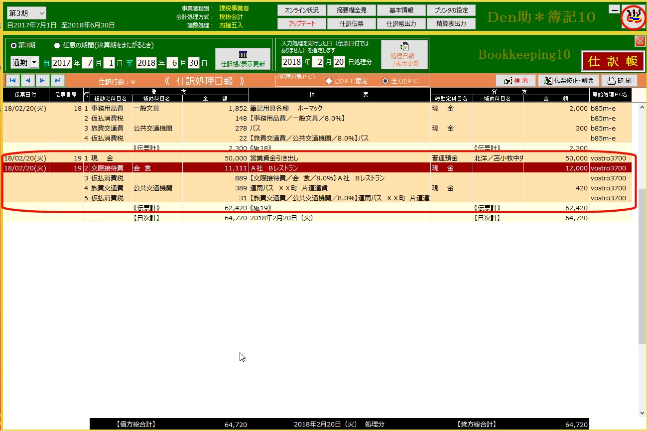 | @.「仕訳処理日報」あるいは「仕訳帳」から該当伝票を呼び出す | ||||