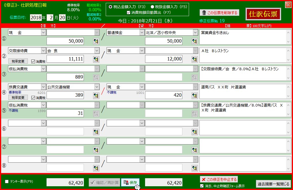 | A.旅費交通費(公共交通機関)420円現金払い を追加 | |||