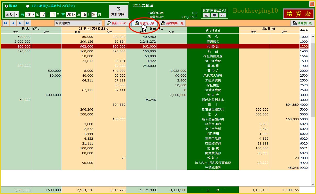 | 3. | 「売掛金」を選んで「総勘定元帳表示」ボタンをクリック | ||