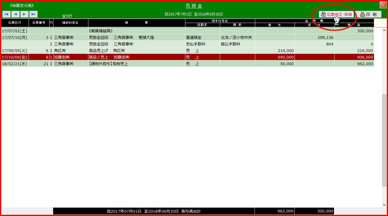 | A.「元帳」(総勘定元帳、補助元帳)から該当伝票を呼び出す | ||||