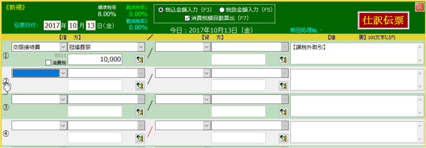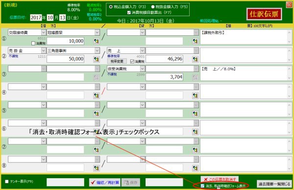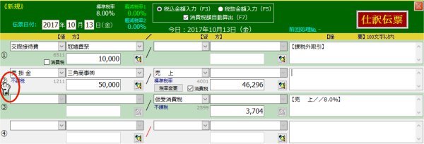 | 2. | マウスをクリックします | 3行目は2行目の「派生」勘定なので連動して消去されます | |