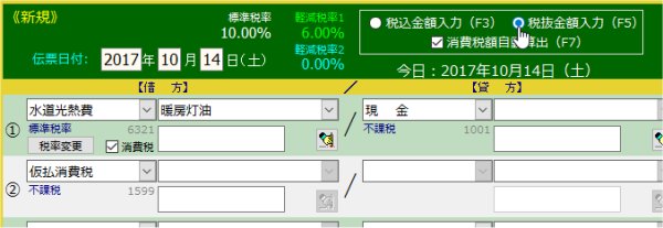 | 1. | 金額を入力する前に「税抜金額入力」ラジオボタンをクリックします