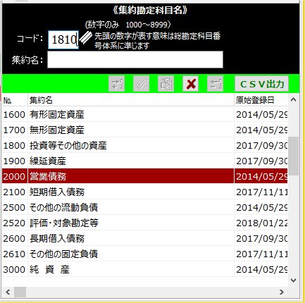 | 《 集約勘定科目メインテナンス 》 | ||||||||||||