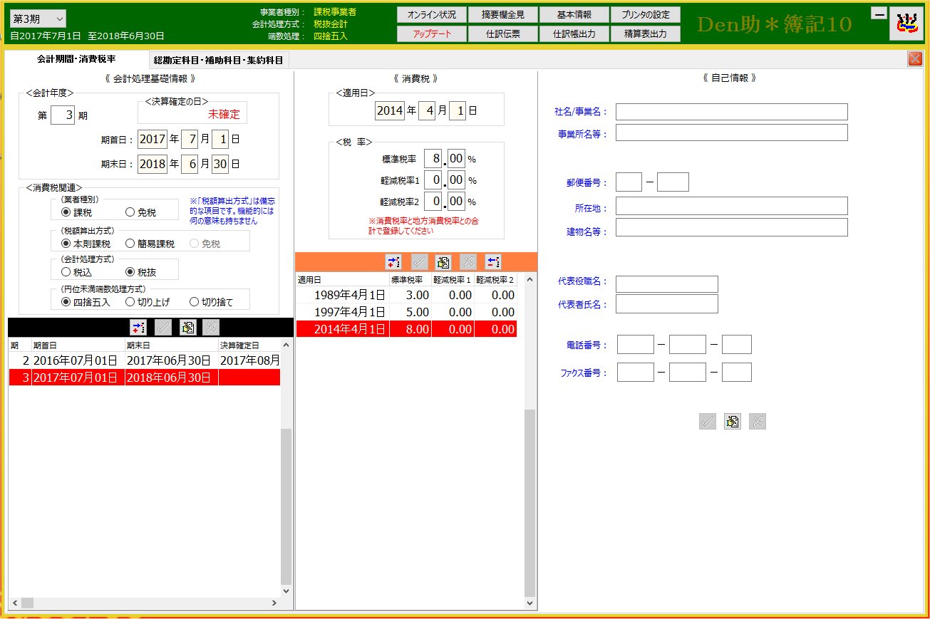 | 「会計期間・消費税率」ページ構成 | |||||||||||