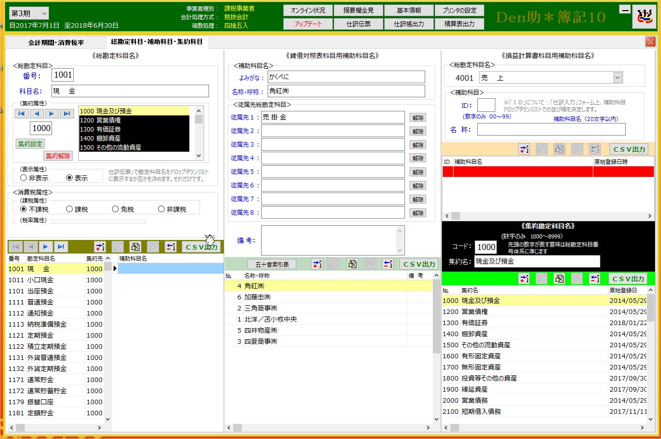 | 「総勘定・補助科目・集約科目」ページ構成 | |||||||||||