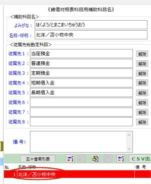 | 1. | 「補助科目一覧表示グリッド」で「北洋/苫小牧中央」を選択し