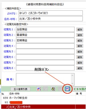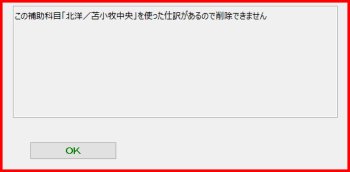 | 2. | 削除対象の補助勘定科目を使った仕訳が存在するときは削除は拒否されます | |||