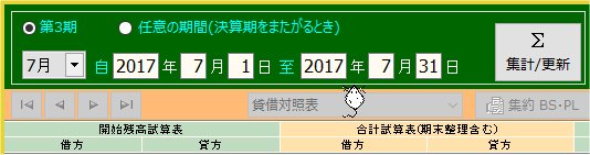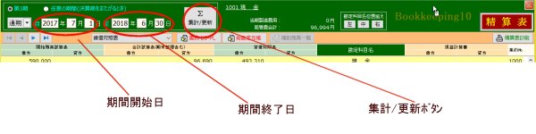 | 2. | 「集計/更新」ボタンをクリック | 本フォーム初期表示時、期間はメインメニューで選ばれている会計期の期首日、期末日が設定されています |