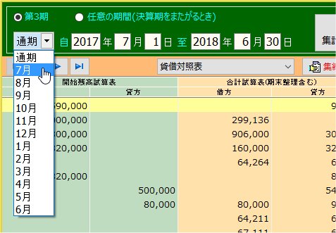 | 4. | 7月の月次集計(月次決算)を表示してみます 「月」コンボボックスから「7月」を選択します |