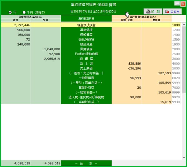 | 1. | 「集約BS・PL表示」ボタンをクリック | |