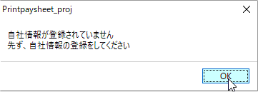 自社情報未登録状態のときには本アプリ起動の度、当該メッセージフォームが表示されます |