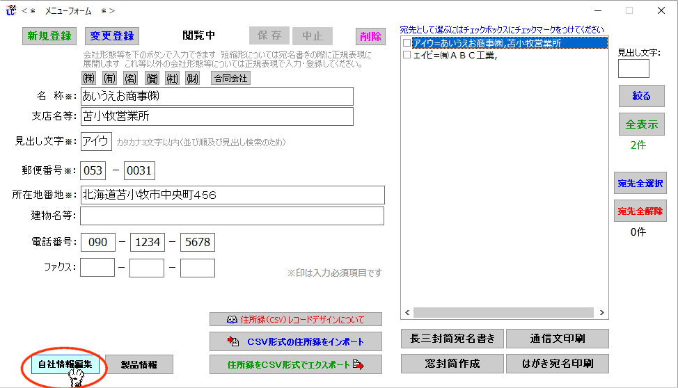 「自社情報編集」ボタンをクリックします |