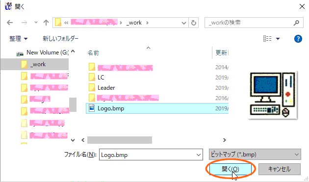 ロゴマークを選んだら 「開く」ボタンをクリックします |