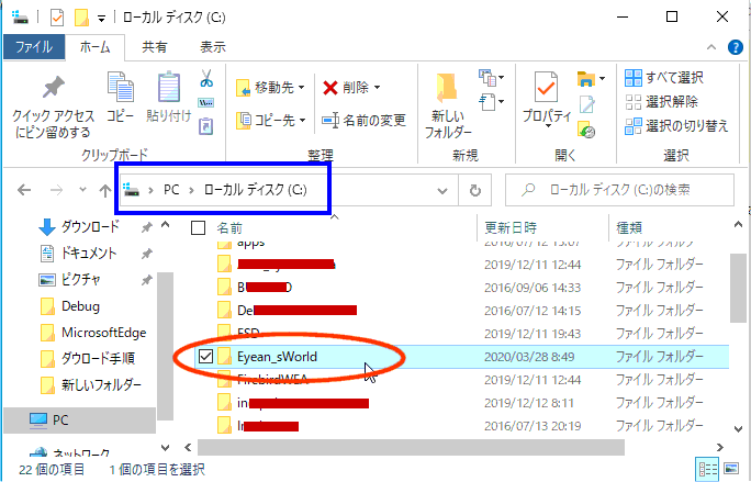 本アプリを構成するファイル及びフォルダは最終的に”C”ドライブに”Eyean_sWorld\LetterComposite