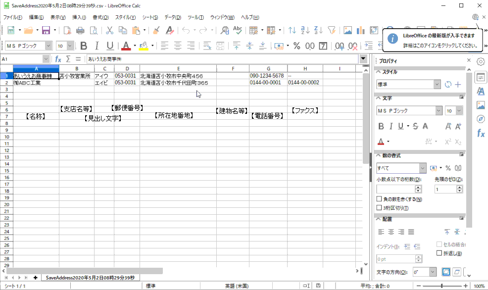 ”は”AddressBook.ini”をCSVファイル形式(カンマ”,”区切り)で”